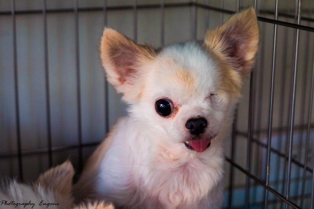 When the rescue volunteers saw the dog, it was about to die. Someone took an air pistol and shot it in the head. The bullet went in through the eye. At the time I didn’t quite understand why anyone would hurt a puppy. However, this dog lived a strong life to the end and survived. He is now very healthy at the Animal Society. He plays and eats with different dogs every day. Don’t worry about being hurt by human again.